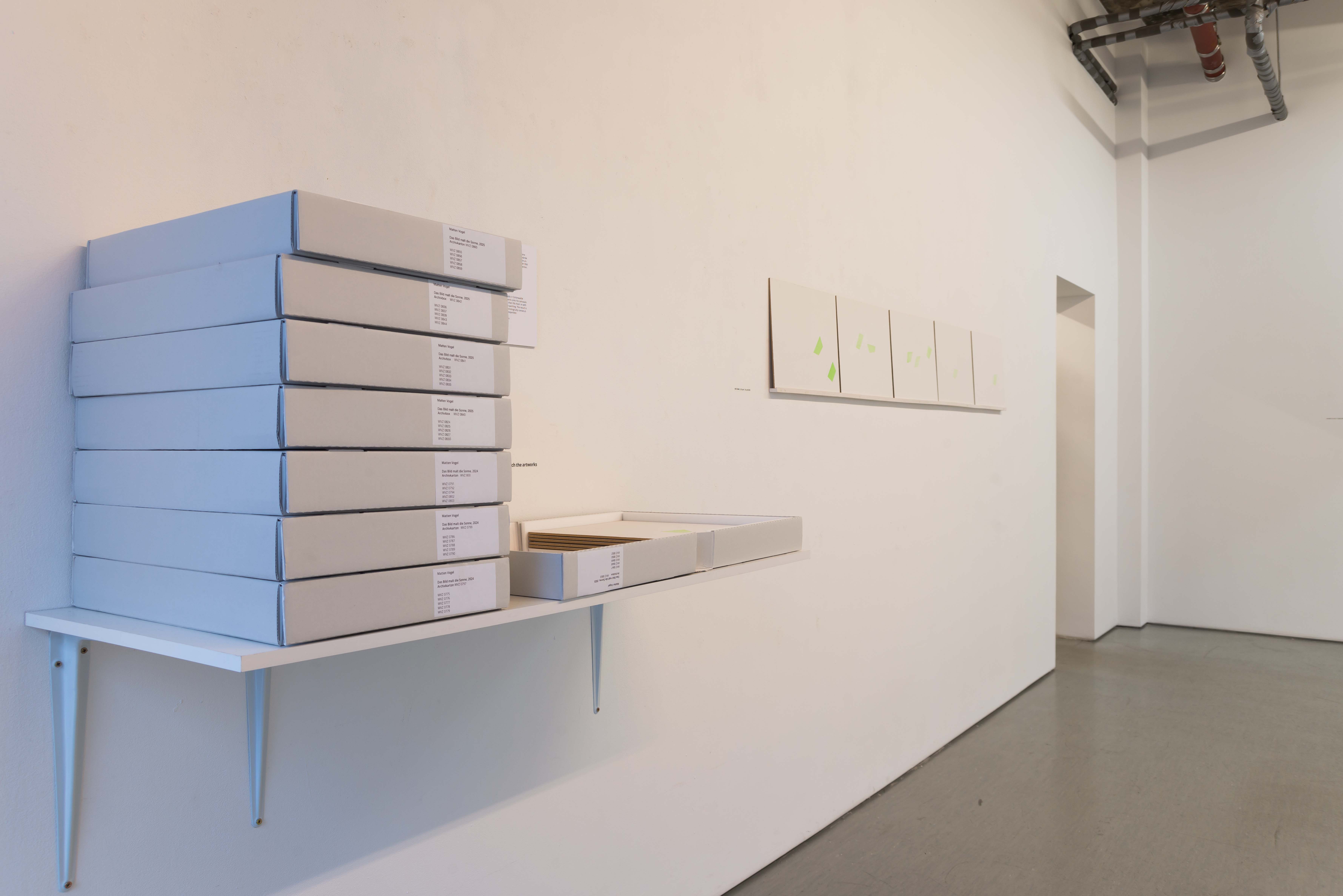 Jeweils fünf chronologisch aufeinanderfolgene Bilder der Serie werden zusammen in einem Karton archiviert.
