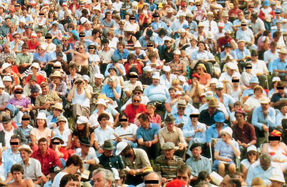 Censorship is the reverse of liberty. It means repression. Involves the suppression of all form of self-determined thoughts and comments by controlling authorities that are higher placed in the hierarchy. It can be instituted by the government or – you only have to think of Michelangelo’s frescos in the Sixtine Chapel – the church. But it also originates from superiors, parents and teacher, that say boycott the establishment of a works council, forbid their children to wear outlandish clothes, and is equally in the decision not to print the critical contribution to the school magazine. In other words, censorship can extend to everyday things – and at times there is no clear-cut dividing line between it and what is generally referred to as “education”. Yet censorship need not necessarily have a negative touch. Given the unabated flood of information produced by the Internet for instance, it can become a real necessity. And who is to decide where legal protection for young people begins, and the obstruction of liberal expression begins? Essentially, censorship is nothing more than an expression of people’s longing to get a grip on life. It represents the desire to uphold existing orders by controlling and limiting whatever goes beyond the familiar, challenges it, or otherwise threatens its existence. At any rate, in the generally accepted sense censorship is more an enemy of art, and by no means its ally. Matten Vogel is aware of this. But it does not seem to bother him. On the contrary. He deliberately incorporates the censorship principle into his artistic work. His method: he takes photos from magazines, books or brochures, selects a section, which he then scans, and places censorship strips across it. Sometimes the black strips are large, sometimes small, at times they appear in isolation, at others several occur together. They are placed across the faces of individuals or a group of relaxed-looking people in summer clothes, eagerly taking photos. But they occur equally in photos of buildings destroyed by natural catastrophes or in idyllic scenes of mountains, forests or seascapes. The important aspect for Vogel in making his selection is that the subjects are not generally known, and as such occupy no place in the observer’s collective memory. For all that, they do not deny their origin, and are easily recognizable in their aesthetic as newspaper, advertising or fashion photographs. Evidently, there are no natural subject-related laws governing the positioning of the censorship strips. If the photos include persons, they are placed over the eyes in the manner familiar to us from pictures observing data protection and privacy laws. This approach seems to make sense in individual portraits, but the situation becomes difficult to decipher when a crowd of people is depicted. In such cases, it is no longer possible to grasp the selection criteria the artist applies to determine which faces to cover, and which to leave uncovered. The whole thing becomes more puzzling still when the black strip floats unencumbered above forest clearings, in snow-covered mountain valleys, or a blue expanse of sky. Is it really concealing something, thereby having a proven subject-related function? Or is it not more the case that it has a formal purpose, is designed to lend the existing picture rhythm and restructure it? Censorship as a means of creating a picture? To Matten Vogel’s way of thinking this is not a contradiction. That much is evident when he say places the strip on the horizon of a (North German?) landscape exactly in relation to the golden section. And it is also apparent in the two levels that are unified in every photograph. Firstly, there is the original photo which has been visibly scanned. Across the latter’s bepixeled surface Vogel places the pin-sharp strip, which though it varies in size always forms the picture’s dominant element. This effectively defines the original picture’s content level through the artistic element of the censorship strip. The overlapping of both areas becomes particularly obvious through Vogel’s employment of the classic, black censorship strip which assumes a truly old-fashioned appearance. Today, people tend to rely on soft-focus lenses or superimpose patterns over the bare breasts of dancing beauties on MTV videos. But such censorship would detract from the formal aspect of fuzziness already expressed in the scanned originals, and would reinforce rather than counteract it. Moreover, the artist believes such methods have a minimizing effect: “whereas censorship strips may be brutal, but are honest.” Already in Matten Vogel’s earlier works we can detect him resorting to control devices, such as the censorship principle in this series. In the video installation “Private” from the year 2001, for instance, he presents night shots of apartment windows on four monitors, whose blurriness evokes the surveillance images familiar to us from popular spy movies. Not that much happens. Occasionally a curtain moves here, a shadow flits behind the drawn curtain, elsewhere the TV screen flickers – unspectacular images reproduced for no immediately apparent reason, that nonetheless expose the private sphere of strangers. Though the monitors reveal a lack of activity, the observer is however a willing party to it. After all, nobody has granted them permission to see what they do, and the participants are not aware they are party to them. This knowledge can produce a vague sense of one’s own superiority, one’s own power. A sense shared by Vogel perhaps vis-à-vis these censored pictures. Ultimately, we are not confronted with censorship by a third party, but by the artist himself, as he never tires of emphasizing in the epithet “censored by Matten Vogel”, that accompanies every single work in the 18-part series. This effectively lends the paradox nature of his action an almost grotesque quality: The artist as the highest control author