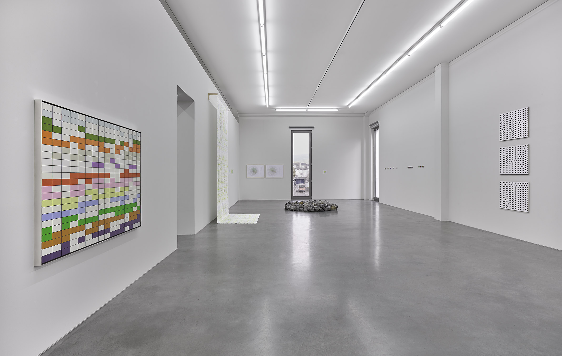 Life is a glimpse, an hour, a day, a week, a month, a time of year. Experienced, rushed, plenty of time, a lot to do, felt good, didn’t feel good, alone, not alone, desperate and beyond hope, euphoric or contented, felt lonely or in good hands. All things imaginable. Time elapsing and becoming memory, dissolving and becoming a cloud along with other clouds – moving on. Or into black dots. Every week a picture with dots, an image of the week. The weekly events taking shape. Something happens, causes interruptions – how long and in which form –afterwards, the patterns of dots modulate, changing constantly, gaps and/or moments of concentration arise, creating ever new patterns. Week by week. A minimal diary. (From 2013 to the present.) Or entire years emerge on a flat surface, a field a day, the fields on a white background are filled in or not: a variety of colors, each month with a color of its own. Seen from afar, a digital model emerges: yes, no, one, zero, fixed colors, nebulous categories, and – seen up close – one window shows a painting, brush strokes, gestures turning into surfaces. Surprisingly, some fields have been painted over repeatedly: life in layers of color, a complete painting sitting there in a small field alongside other fields now seemingly forgotten. (2015 and 2016, naturally unfinished, because the year is not over yet.) It’s life that decides the distribution of the surfaces. What kind of year was it for you, Matten? And: what kind of year was it for me? Life seen through the glasses of this artistic temperament: discreet. Tender. Consistent. And upright, because you can’t paint over yesterday – and if you do, it is no longer true.