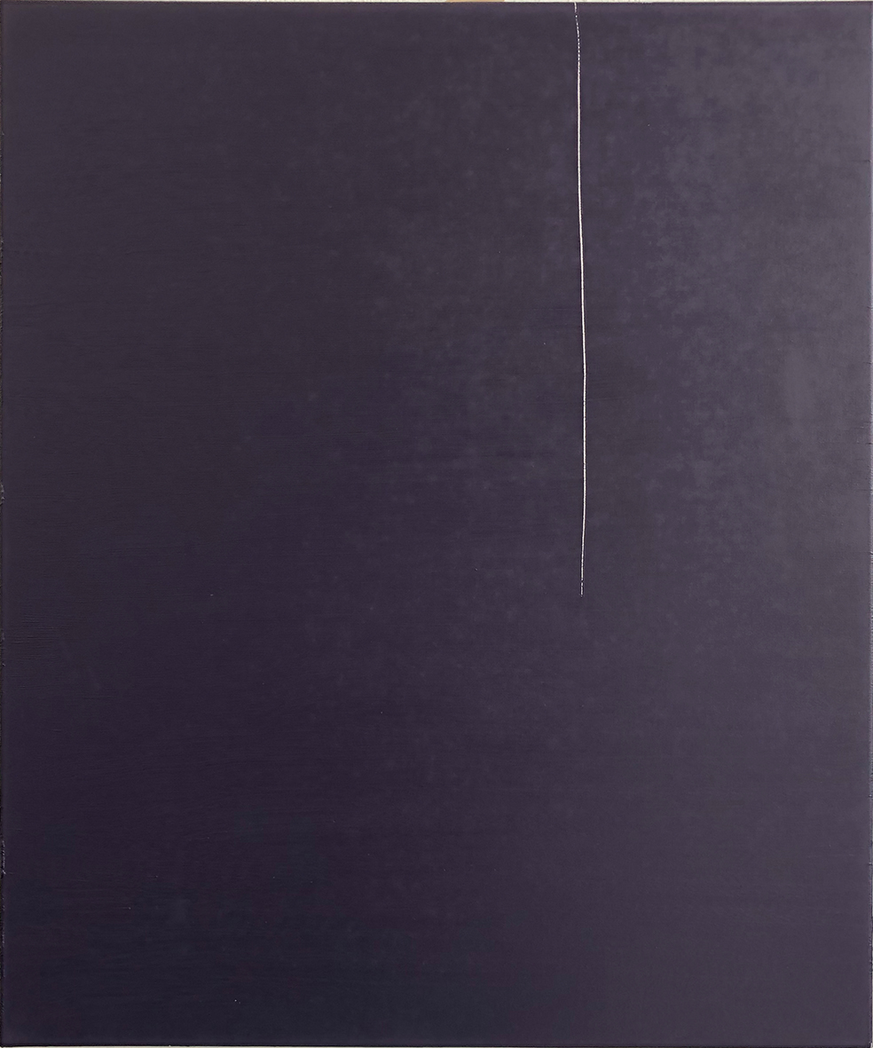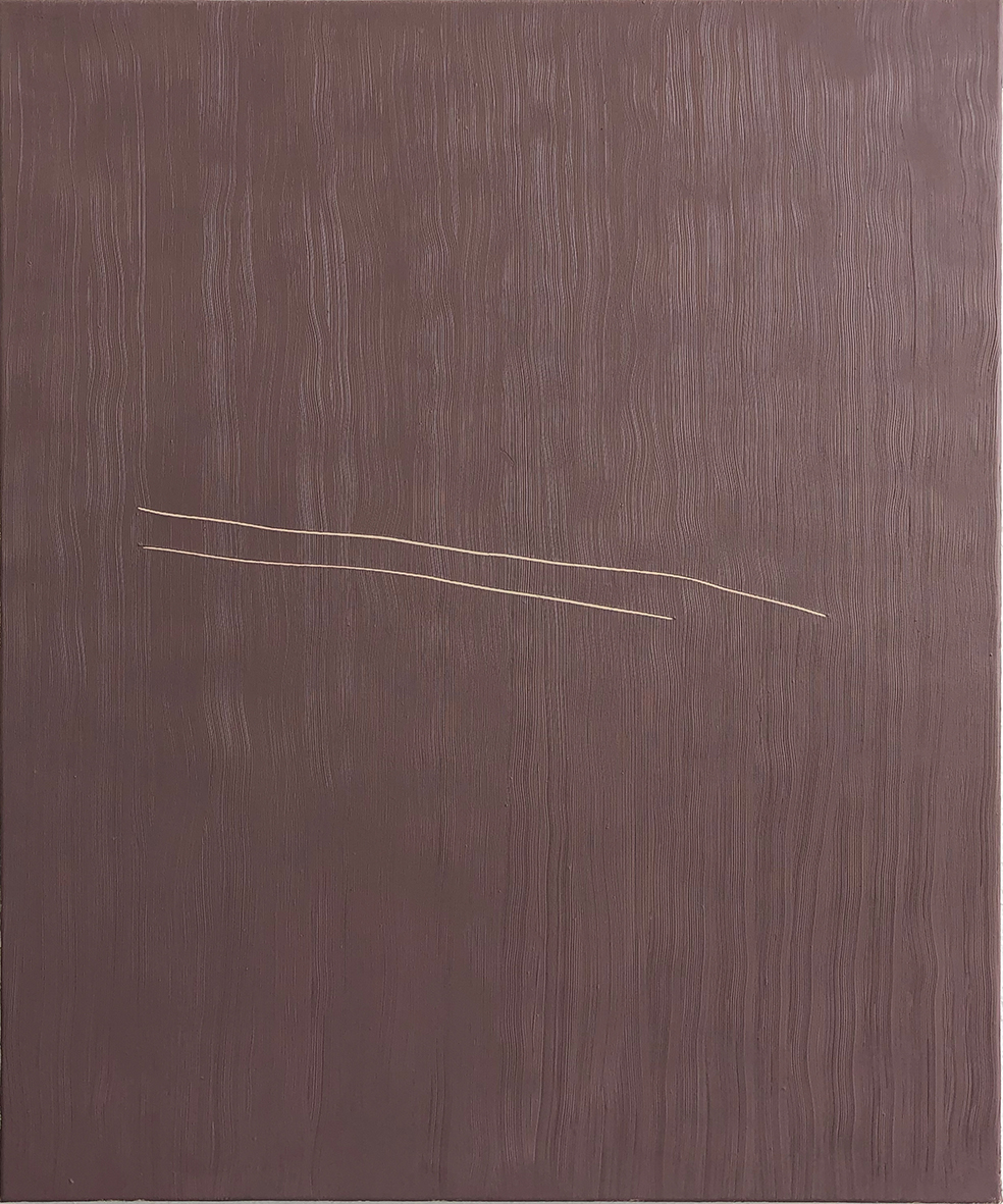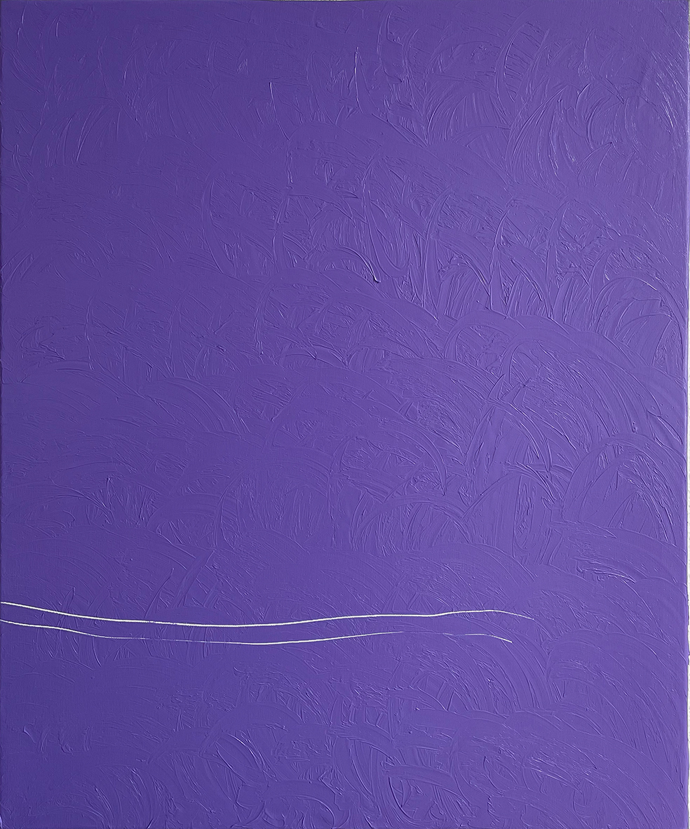 ... Matten Vogel's „Kratzer“ [scratch] pictures, since March 2021, are something of a "role model" for "Üm", if you will. With pens attached to his fingers, the artist strikes at the canvas with spontaneous angry gestures. These quickly and directly executed notations then appear in the form of abstract-impulsive strokes – or scars? – on the canvas. In a second step, the canvas is then covered in paint by the artist, in such a manner that only these strokes remain visible. The images of this group of works, which he calls "risk painting", are tagged with their date of origin, like his Date paintings, and are something like a daily record of the inner anger of the artist, caused not least by the corona pandemic. Like "Üm", the "Kratzer" images are also characterized by the fact that they generate their power in the time-based interplay of attendance and overpainting. The two artistic approaches stand out for their courage to take risks and the willingness to fail productively...