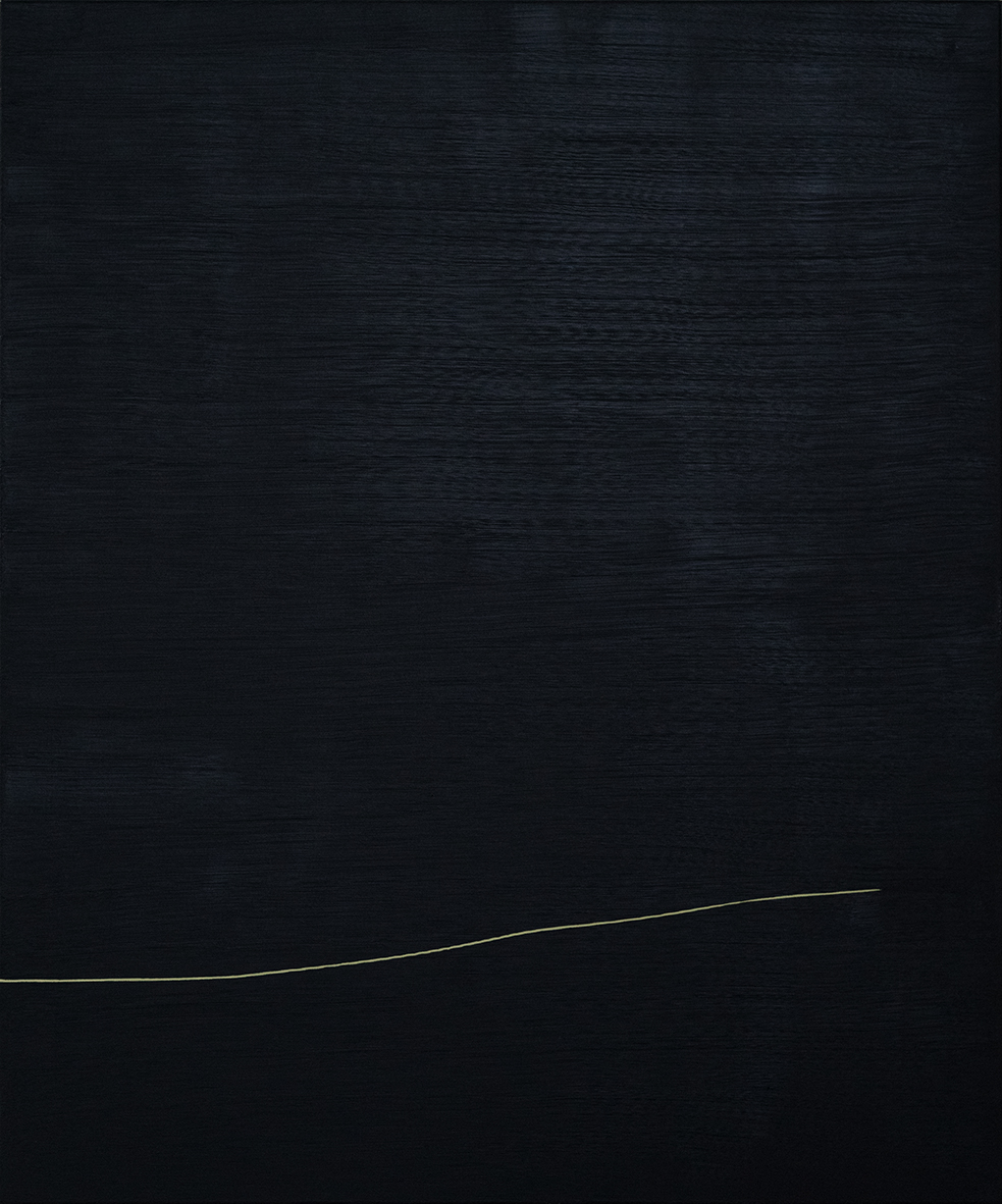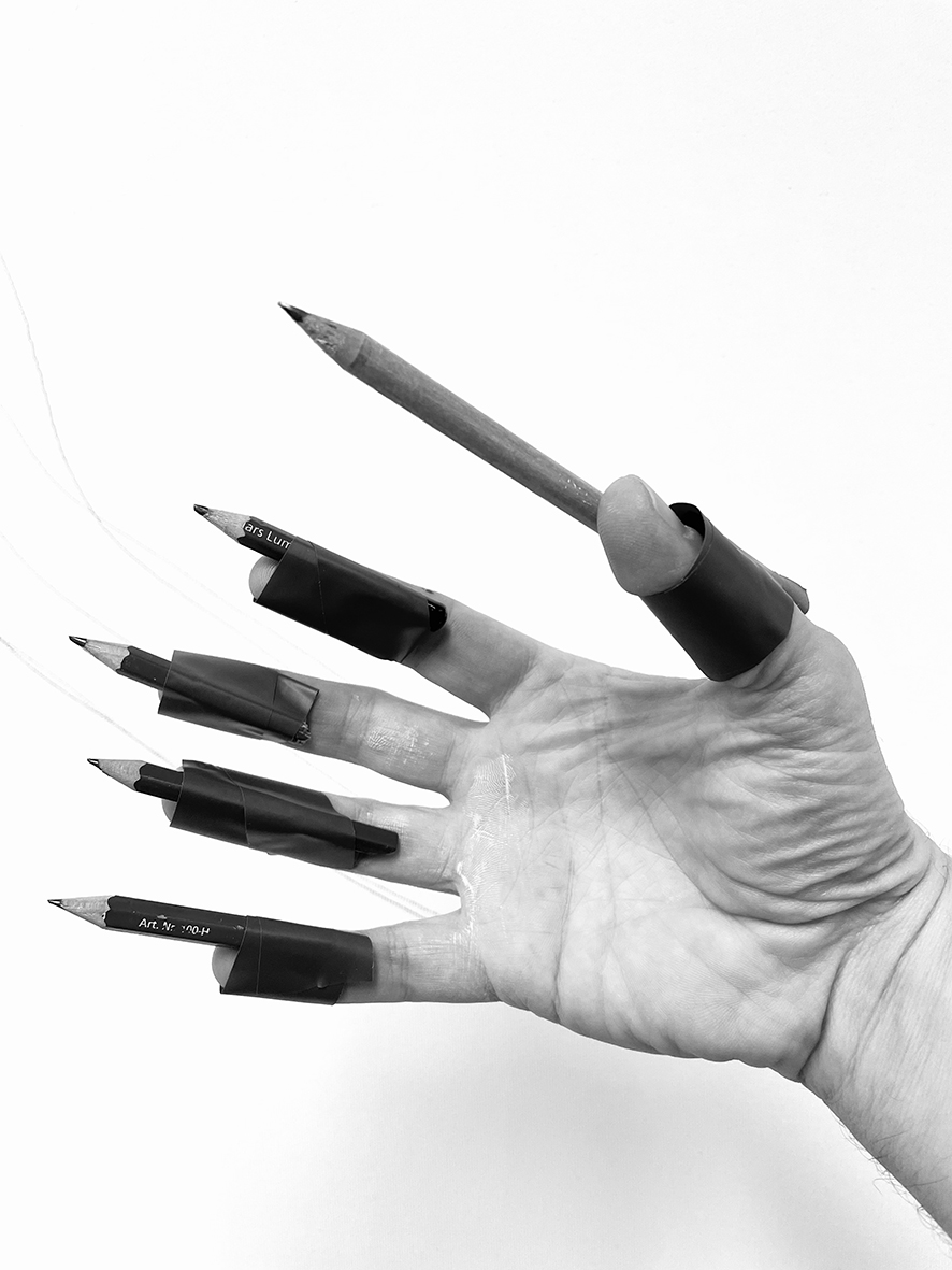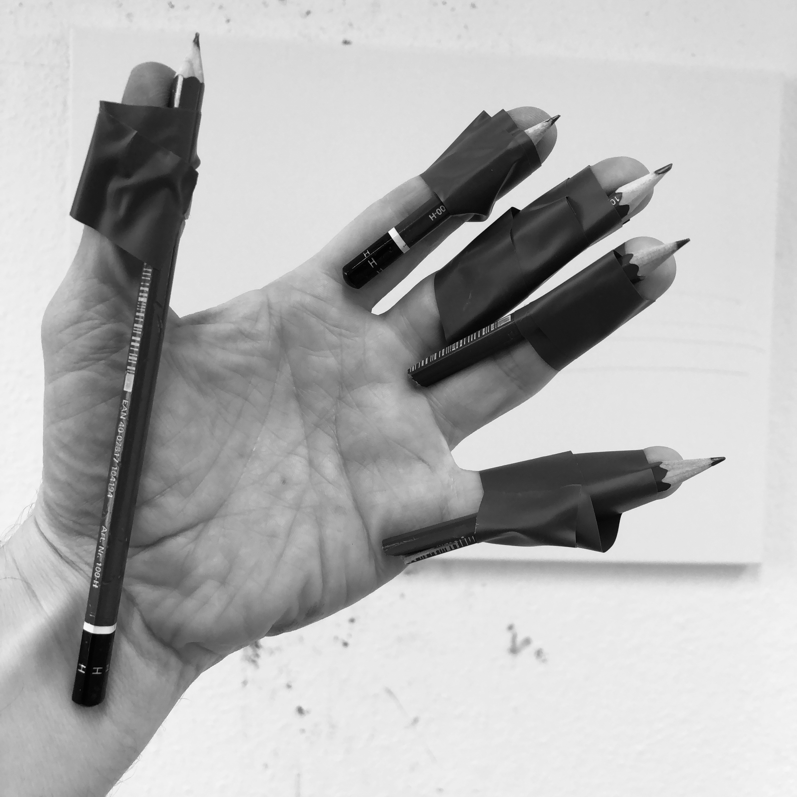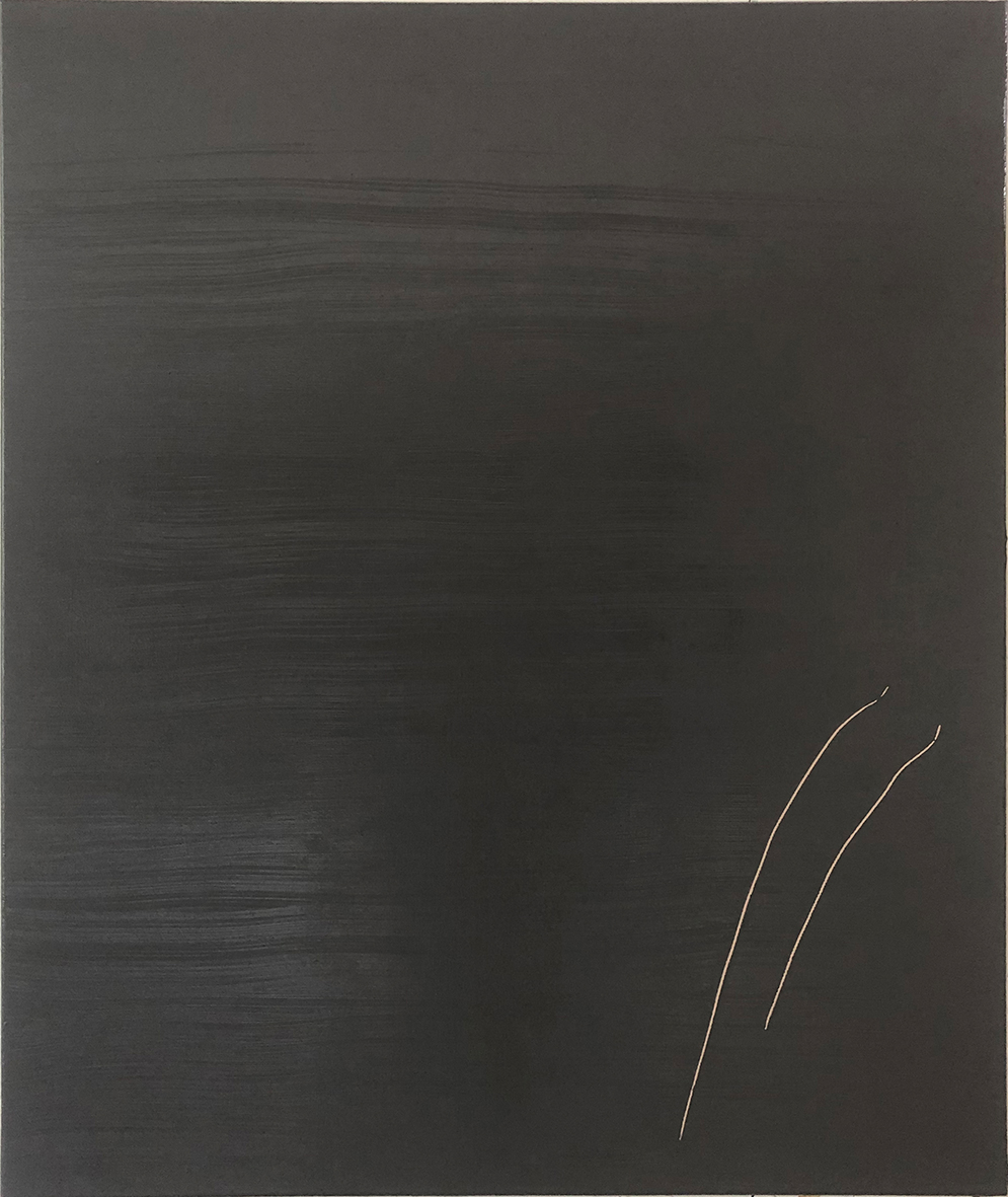 ... Matten Vogel's „Kratzer“ [scratch] pictures, since March 2021, are something of a "role model" for "Üm", if you will. With pens attached to his fingers, the artist strikes at the canvas with spontaneous angry gestures. These quickly and directly executed notations then appear in the form of abstract-impulsive strokes – or scars? – on the canvas. In a second step, the canvas is then covered in paint by the artist, in such a manner that only these strokes remain visible. The images of this group of works, which he calls "risk painting", are tagged with their date of origin, like his Date paintings, and are something like a daily record of the inner anger of the artist, caused not least by the corona pandemic. Like "Üm", the "Kratzer" images are also characterized by the fact that they generate their power in the time-based interplay of attendance and overpainting. The two artistic approaches stand out for their courage to take risks and the willingness to fail productively...