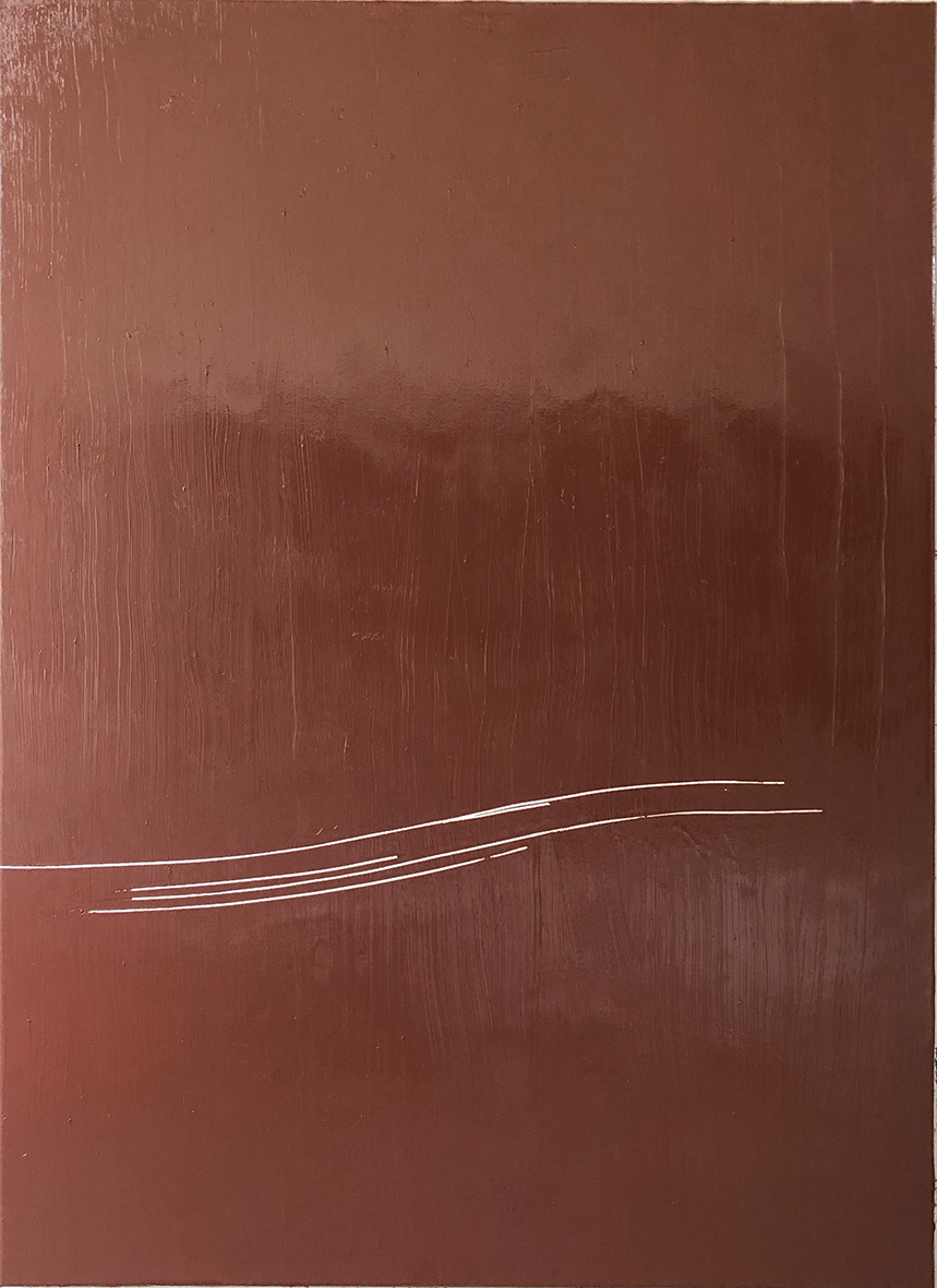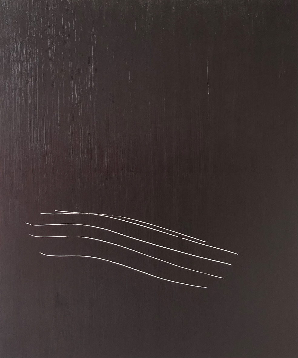 ... Als „Vorbild“, wenn man so will, für „Üm“ können Matten Vogels „Kratzer“-Bilder, seit März 2021, angesehen werden. Mit an den Fingern angebrachten Stiften bearbeitet der Künstler die Leinwand mit spontan-wütenden Gesten. Diese schnell und direkt ausgeführten Notate erscheinen dann in Form von abstrakt-impulsiven Strichen - oder Narben? - , auf der Leinwand. Im zweiten Arbeitsgang wird die Leinwand vom Künstler flächendeckend bemalt, und zwar so, dass nur noch diese Striche sichtbar bleiben. Die Bilder dieser von ihm selbst als „Risikomalerei“ bezeichneten Werkgruppe werden, wie seine Datumsbilder auch, mit dem jeweiligen Entstehungsdatum versehen und sind so etwas wie das Tagesprotokoll der nicht zuletzt von der Corona-Pandemie hervorgerufenen inneren Wut des Künstlers. Die „Kratzer“-Bilder sind wie „Üm“ unter anderem dadurch charakterisiert, dass sie im zeit-basierten Wechselspiel von Anwesenheit und Übermalen ihre Kraft generieren. Beide künstlerischen Ansätze zeichnen sich außerdem durch ihren Mut zum Risiko und die Bereitschaft zum produktiven Scheitern aus...