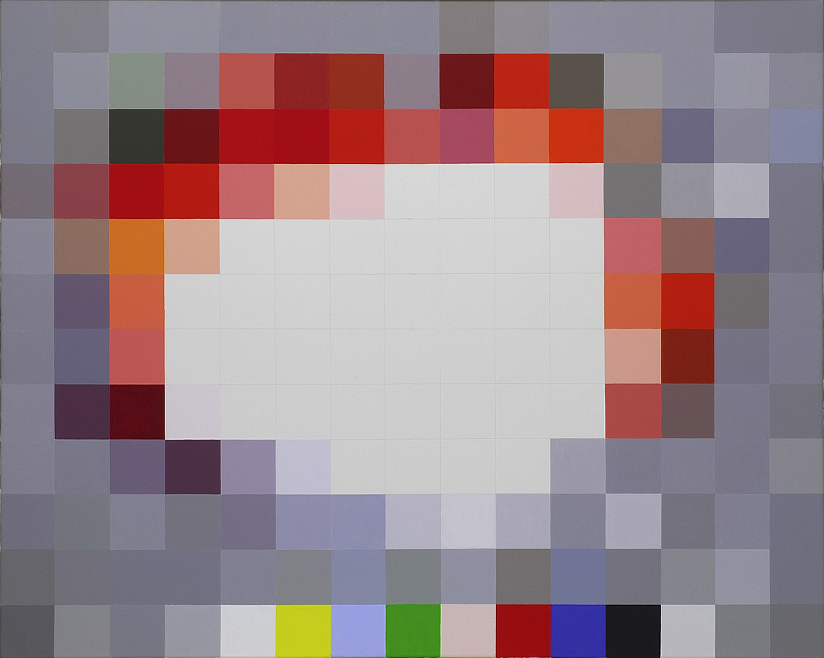 We become the witnesses of a classic process of abstraction: a particular motif is transferred to a general grid, and the reproduction of a visual appearance is transcended to advance to an idea, an essence, substance, structure, or simply to a square (and sometimes a pixel. This is part of the process whose result we see in Matten Vogel’s series Not. In all its variants, this process determined like no other the course of art in the last century; one could almost say it is the basic motif of Modernism: to translate the particular into a generality or to work out in the particular the laws of composition of the general. This is true not only of art, but equally for developments in the politics and administration of society, with the well-known “shadow sides” that are connected with the absoluteness and “purity” of general categories. In a certain way, chemical processes like reduction, essentialization, and isolation are akin to the process of abstraction. In mathematics and politics, one could make comparisons to set theory, which categorizes elements with specific qualities; in linguistics, one could think of the “empty signifier”, social signs like the idea of the nation (the famous example here is the monument of the Unknown Soldier), which display an extremely high degree of abstraction that requires the individual’s imagination to fill it with concrete content, thereby taking on substance and embodiment. Later, the idea of essence was itself in many ways rejected and demasked as a construction of discourse – with which the search for the abstract in itself was replaced by the gesture (and thereby the possibility, the process) of abstraction as the central process of producing meaning. It is not far from the “empty signifier” to the other element in Matten Vogel’s Not pictures: the void, but also the test image. The pictures we now see have developed out of two previous series: “ zensiert von...” (censored by...) and “nicht gemalt” (not painted). In “zensiert von...”, black censorship bars are laid across central or incidental elements of found photographic motifs: faces, usually, but also a ship in the middle of the picture. This may have less to do with censorship itself than with the gesture of making something disappear – more precisely, with making the center or focus disappear: the face, the eyes, which are the center anyway, or the motif in the middle of the picture. “Zensiert von...“ is thereby an approach to the gesture of power as such: power as the potency to dissolve or extinguish something particular or singular in a generality. The series “nicht gemalt” is like a series of tests for the pictures we now see: in classically painted genre motifs, large surfaces are “cropped away”. This is quite different from the gesture of the censor’s black bar, but it expends itself on the painting, which exerts a powerful pull. In Not, the motif of the empty middle is released from this embrace of the painted motif, an embrace that still makes us think of cropping, painting over, etc. The boundary between painted and not painted is now fluid and yet absolute: the motif (the pictures build upon the “nicht gemalt” series) is divided into even, monochromatic fields of color that follow a grid laid over the entire picture surface. The fields of color left empty in the center of the picture thus become an actual emptiness, the emptiness of the center. This can be a gesture of negation (the title points to this) or one of creating space, or a meditation that recalls the organizational principles of Japanese gardens and cities, whose center of power also describes a void. But it can also be, in a broad sense, an “optical” effect or defect, an impossibility to focus, to identify, and to recognize the real, the essence; a situation of being pushed to the margin of the field of vision, where identification is possible, but always already particularized – the general is a necessary fiction and cannot be identified. The test image footage taken from television and placed on the lower edge of the picture points to this and simultaneously introduce the element of the modular and mechanical norm to the pictures. Here, the empty middle stands in a constantly redefined, reciprocal, and yet always hierarchical relationship to the identifiable edge, while the basic grid stands for their common constitution. It is the general emptiness that allots the particular its place, but at the same time emptiness is also an absence and even a lack of the particular. Also familiar is the concept of the “empty middle” from political and social theories: the empty center of power permits and forces the particular to make itself identifiable, to take on an identity, to direct itself to become specific in relation to the generality. At the moment when the authority itself becomes identifiable, however, it becomes assailable and is often pushed all to rapidly too the margin. In this sense, the empty middle in the Not pictures is a pulsating and yet hermetic center that exemplifies the virulent problem of the necessity of emptiness as loss and gain.