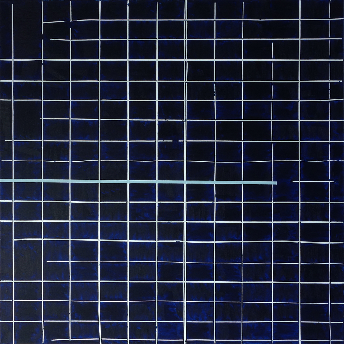 Rasterkorrektur Nachtblau mit hellblauer Linie, 09.10. – 15.10.2018 Öl auf Leinwand / oil on canvas, 100 x 100 cm