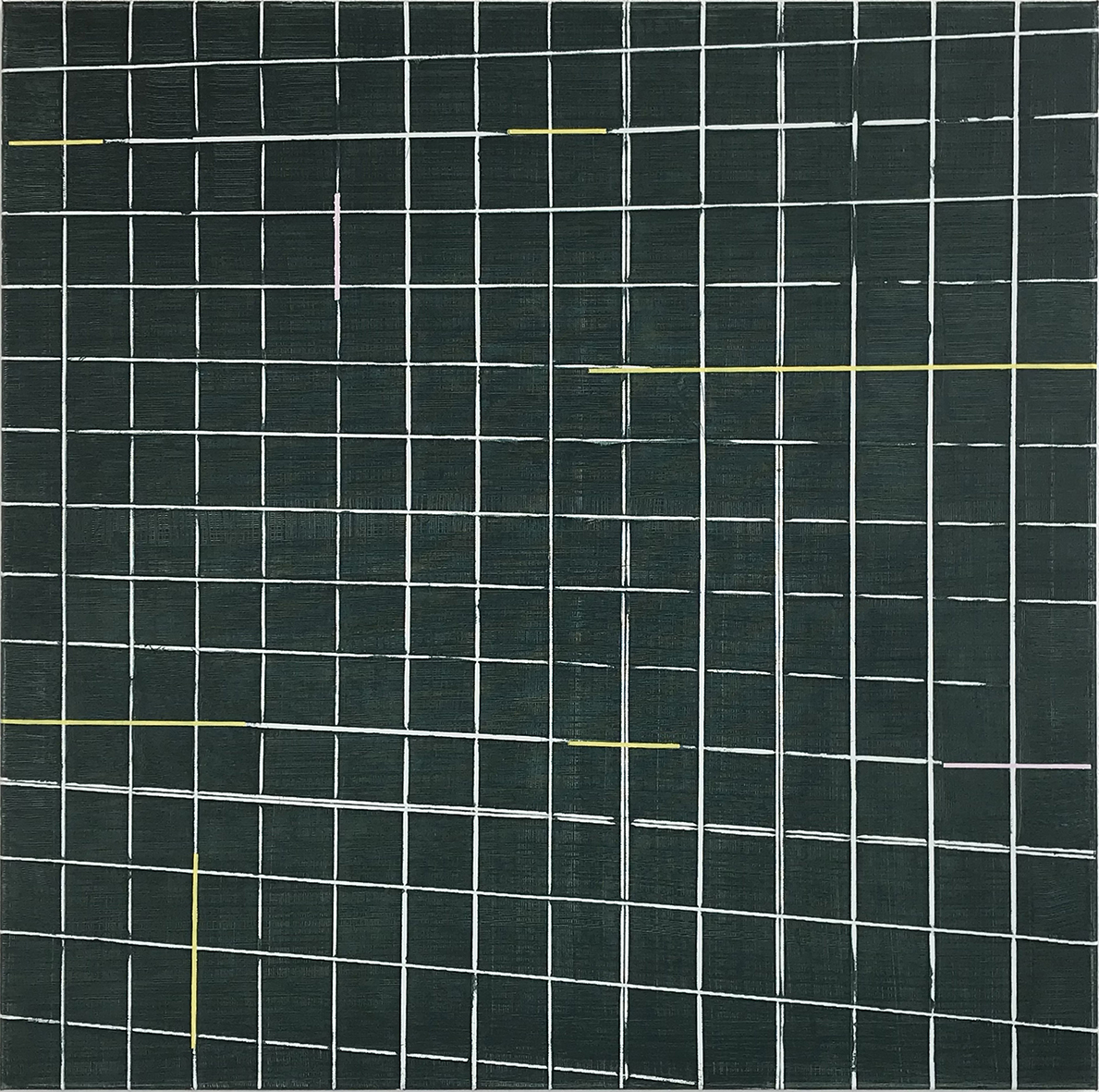 rosa Rasterkorrektur mit olivgrünen Strichen, 29.06 – 20.07.2018 Öl auf Leinwand / oil on canvas, 80 x 80 cm