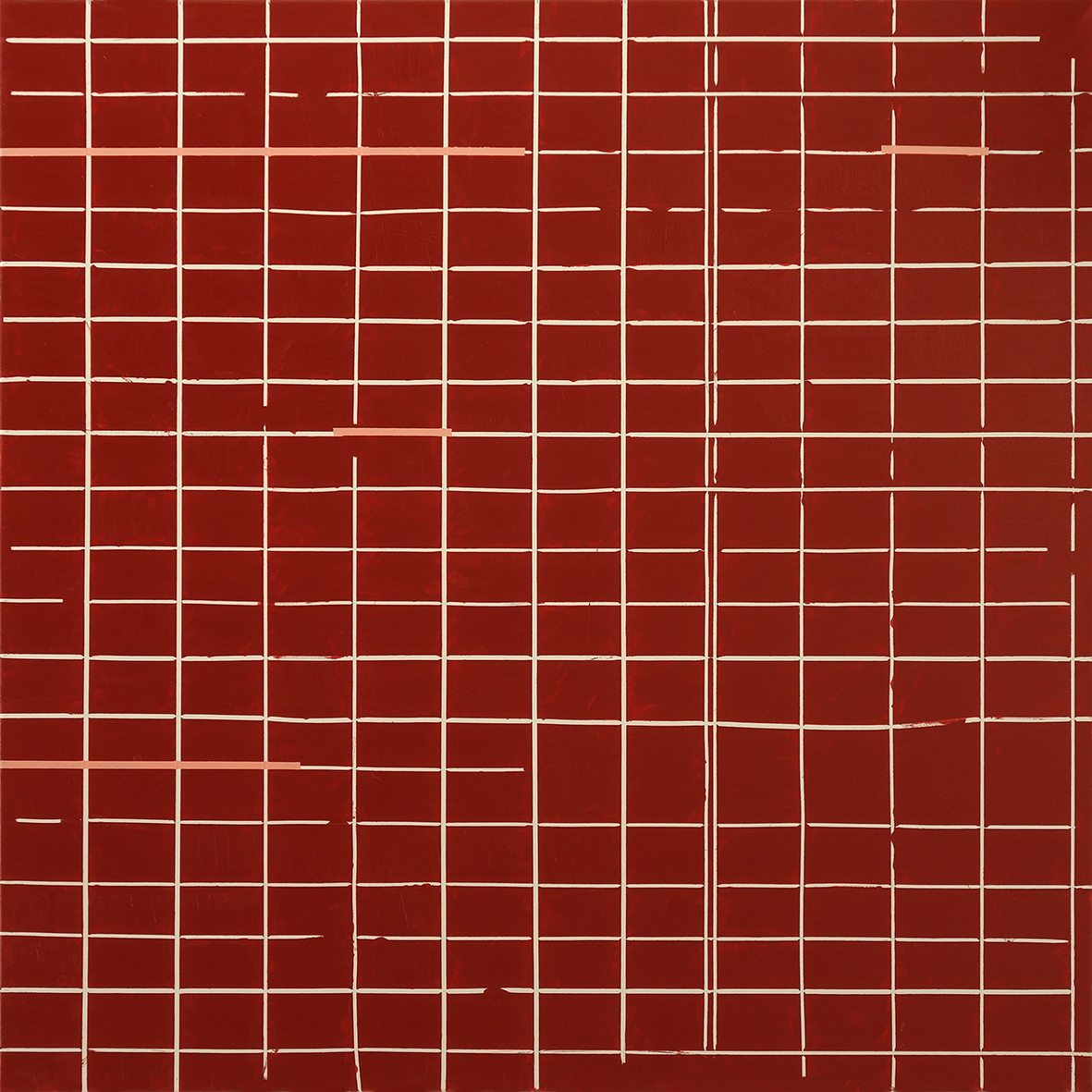 Rasterkorrektur Rostrot mit vier rosa Linien, 29.09 – 09.10.2018 Öl auf Leinwand / oil on canvas, 100 x 100 cm