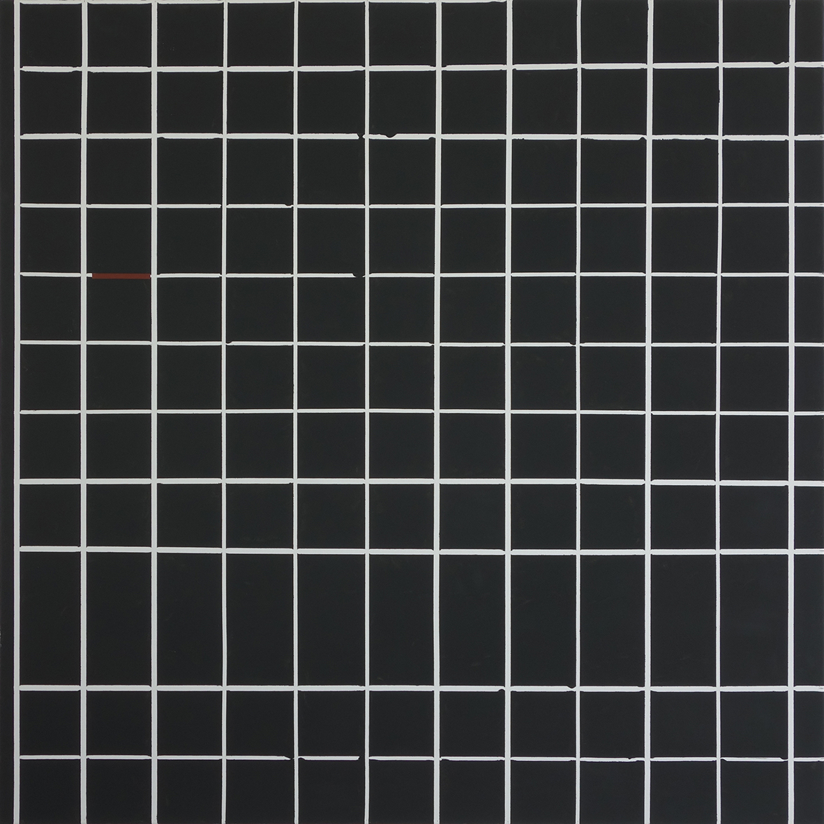 weißes Raster durch schwarz und einem braunen Streifen, 04.08 – 07.08.2018 Öl auf Leinwand / oil on canvas, 100 x 100 cm