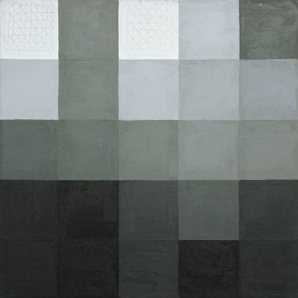 under compulsion # 26, 2007 zwangsweise beendet am 14.04.2007 um 11:23 Öl und Bleistift auf Leinwand 50 x 50 cm