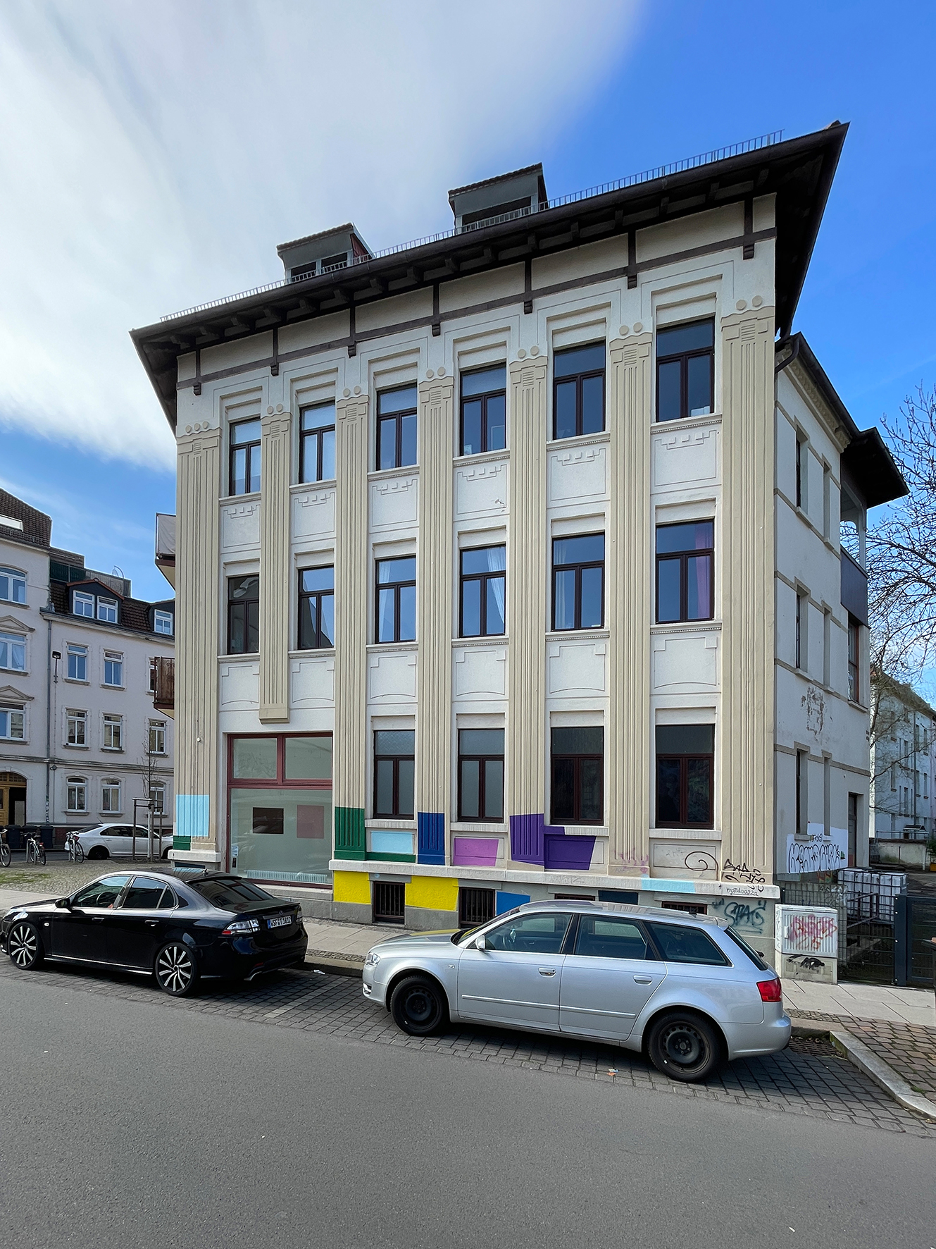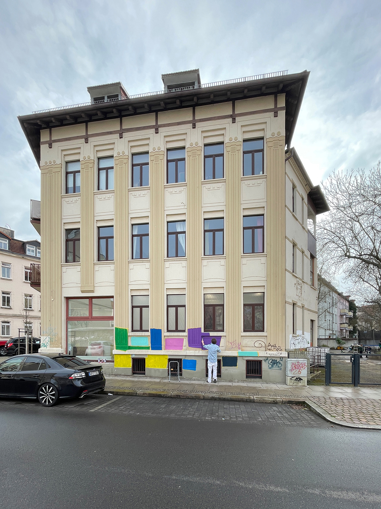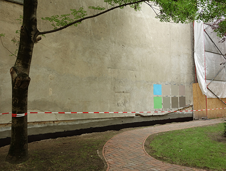 Vorgefundene Probeanstriche für Fassadengestaltung, Berlin - Mitte
